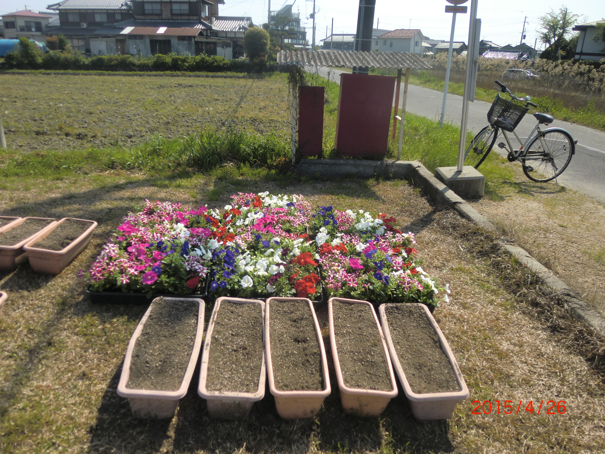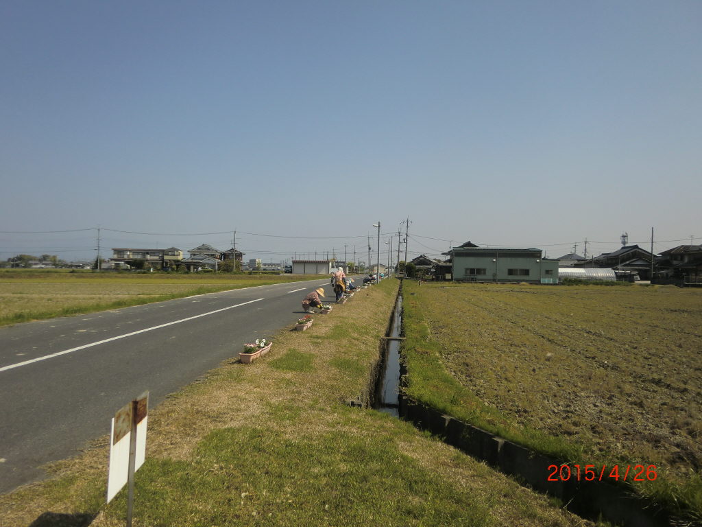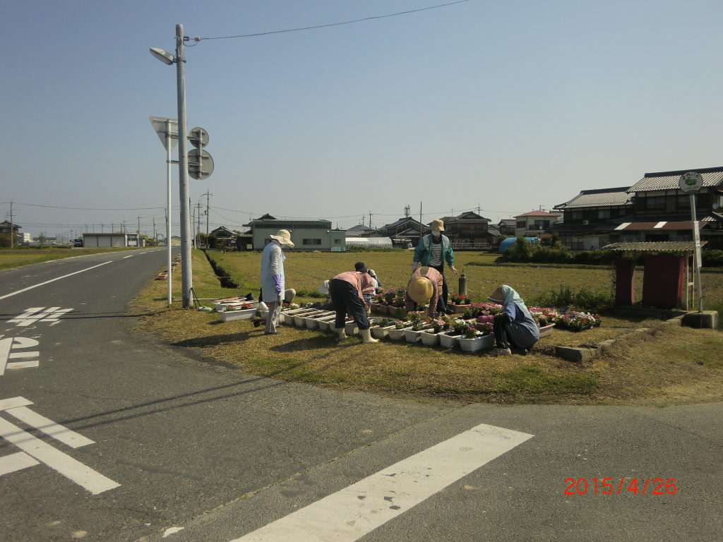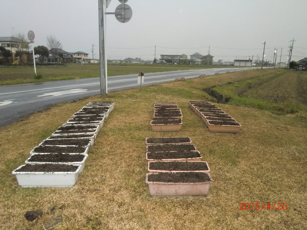 2015/4/19 景観活動/守る会 夏の花用プランタンの土の準備 メロン街道草刈り