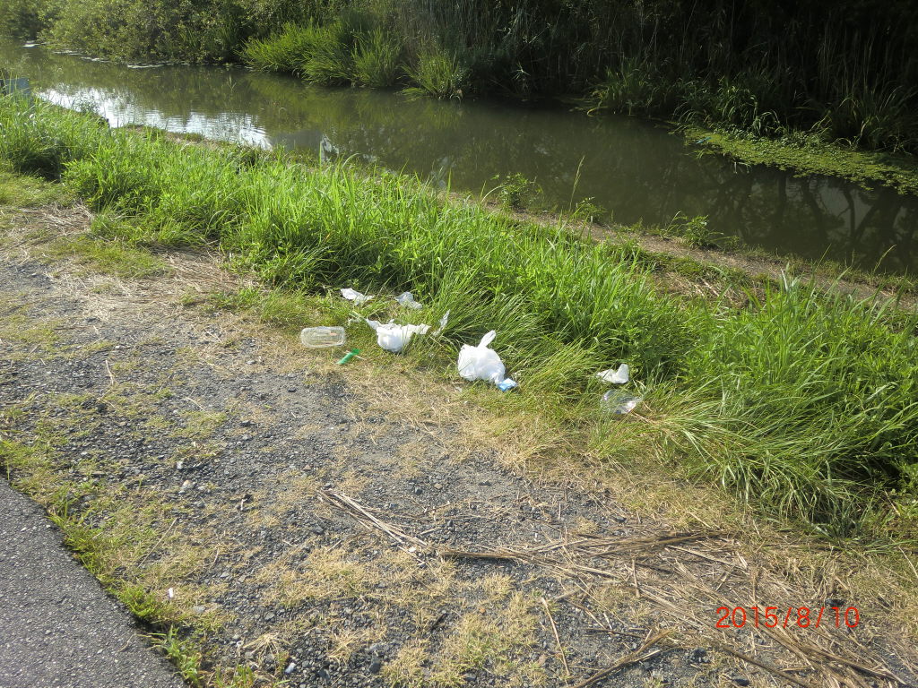 2015/8/11 守る会 カバーグラス水やり(4組ゴミ集積場、旧ポンプ置き場、7組横)、草刈り 写真