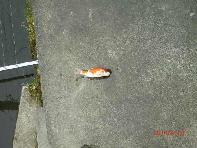 2016/4/25 景観活動/守る会 緋鯉が一匹弱っていたので放流しました。(3月17日放流分) 写真 1