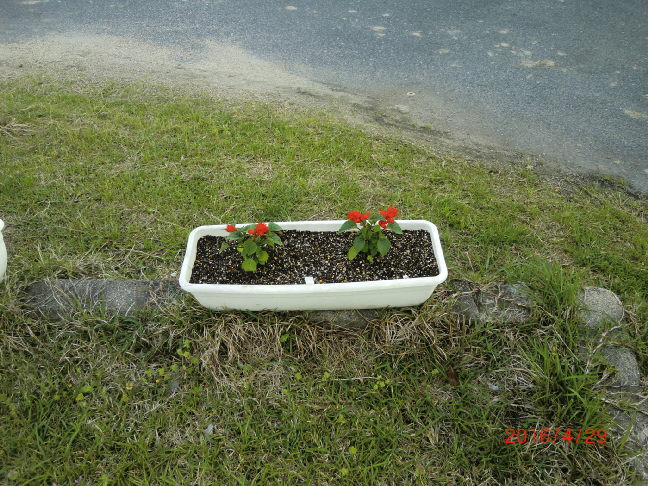 2016/4/29 景観活動/守る会 メロン街道-花の植付・カバープランツ手入れ サルビア ベゴニア ポーチュラカ ペチュニア 町内花の植付
