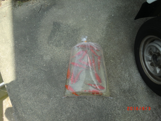 2016/8/7 守る会 緋鯉今日までに3匹ダメになりました 何とか育ってほしい