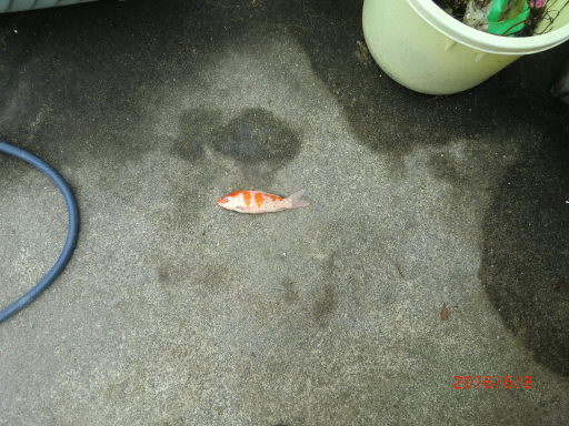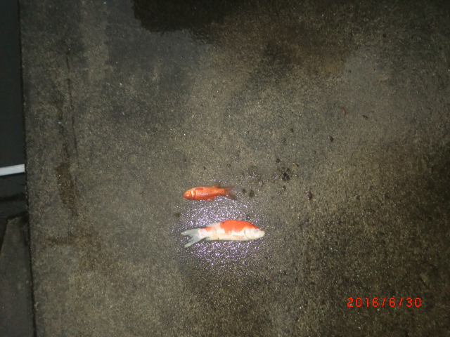 2016/6/30 守る会 姉金1匹死にました。 緋鯉1匹死にました。 写真