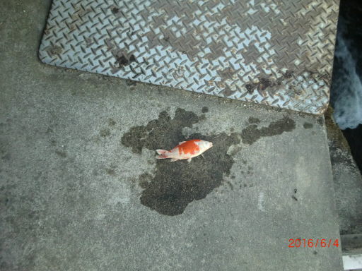 2016/6/8 守る会 緋鯉1匹が死にました。  写真