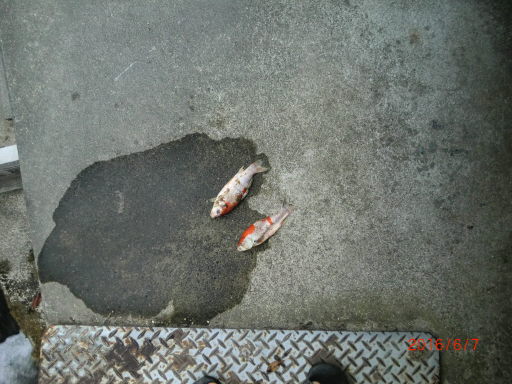 2016/6/11 守る会 緋鯉次々と死んでいきます。 残り4匹になりました。写真