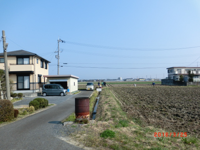 2018/3/17 守る会 田んぼにポイ捨ての処理 犯罪的ポイ捨てです。写真は撮っていませんがガラス瓶の破片が入っていました。また鶏肉もパックで捨てられていました メロン街道の私の田んぼの北側