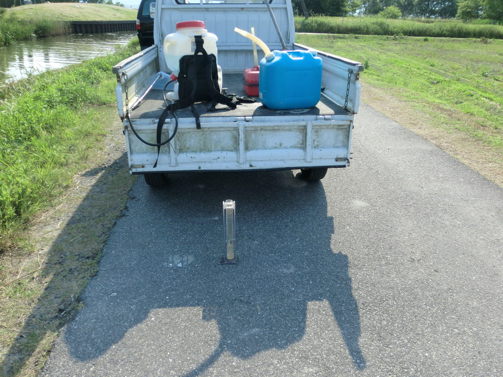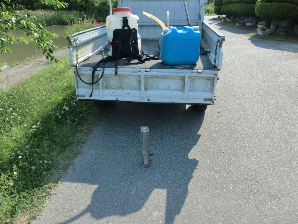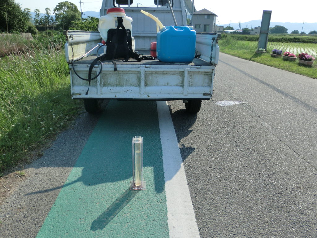 景観活動については、水やり、除草計画、生物環境については緋鯉育成継続、濁水防止行動計画の確認2017/5/9 守る会 洗い場除草剤散布 メロン街道一部、7組付近の跡地草刈り