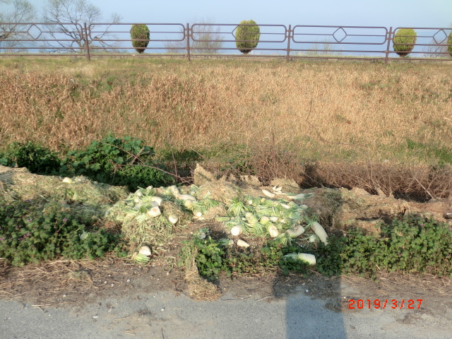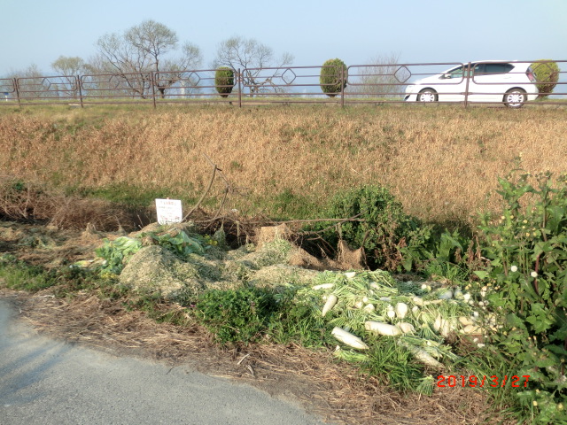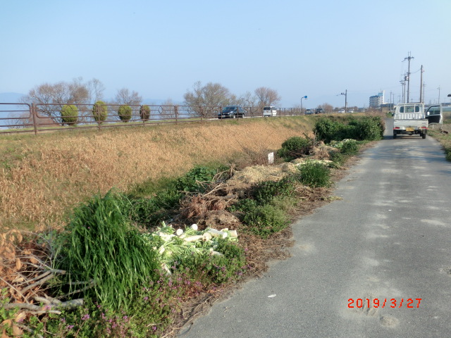 3月27日 湖岸提 不法投棄 警告看板(3月某日設置)なんのその 写真 写真 写真