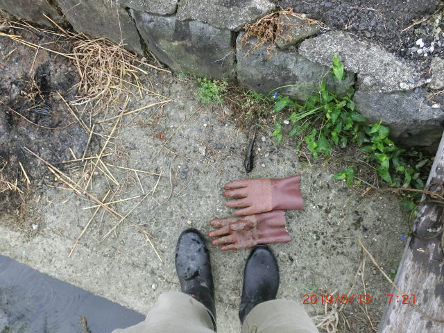 2019/9/13 山寺川たまり場 藻&桜の落ち葉清掃