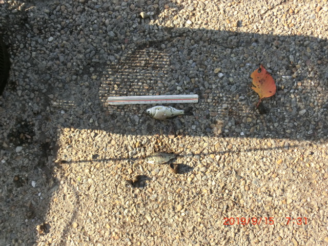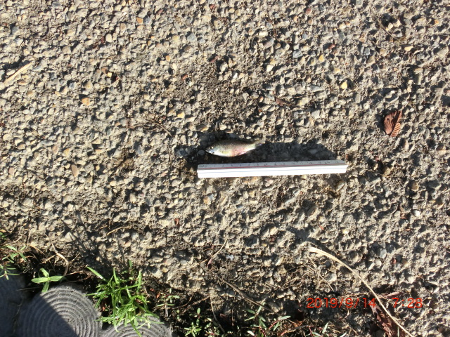 生態系調査 水路で捕獲何の魚??? 写真2019/9/9 有志の方 通学路 山寺川沿い 草刈り 写真