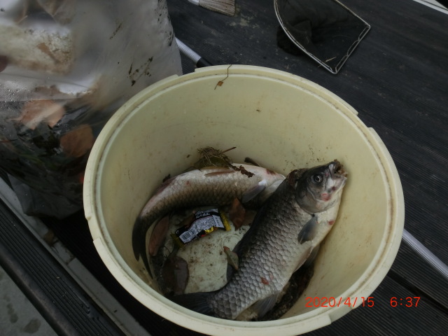 2020/4/4 生態系調査 ブルーギルばっかり、がっかり 写真