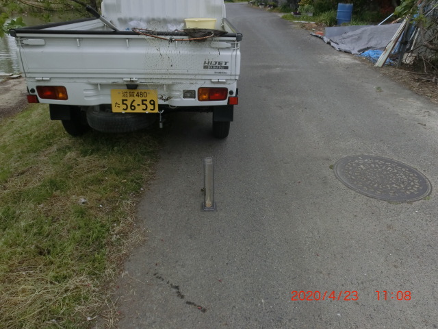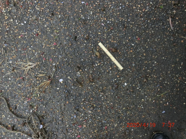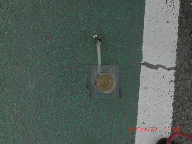 メロン街道草刈り用足場、ペチュニアプランタン整備2020/4/23 守る会 透視度調査(代かき前) C地点30cm全体 アップ