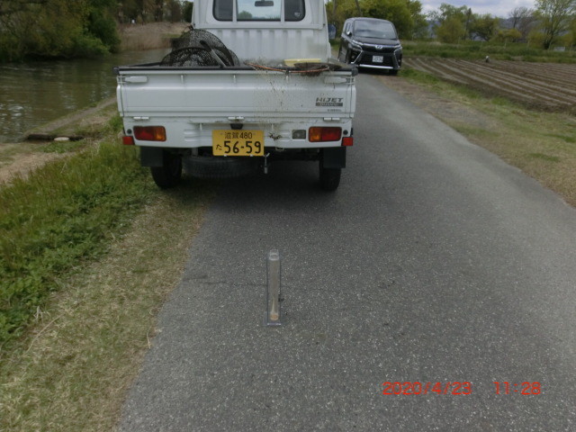 生態系調査場、その他環境整備場 草刈り、除草剤散布2020/4/15 生態系調査 にごろブナ8cm ブルーギル 山寺川内は捕獲なし 写真 この頃町中小川の鯉が病気 写真