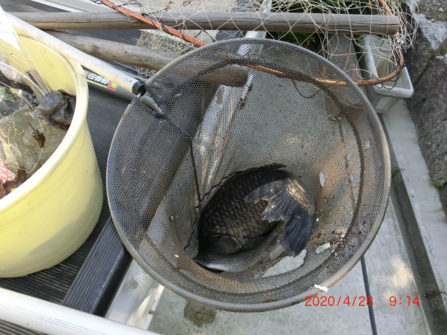 2020/4/2 生態系調査 なぜか鯉の捕獲 写真