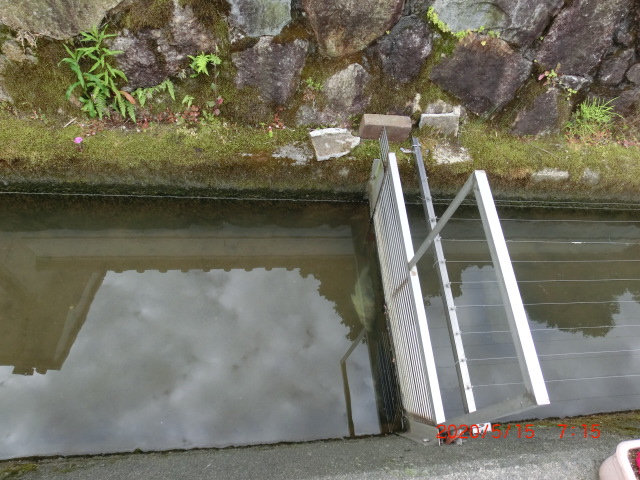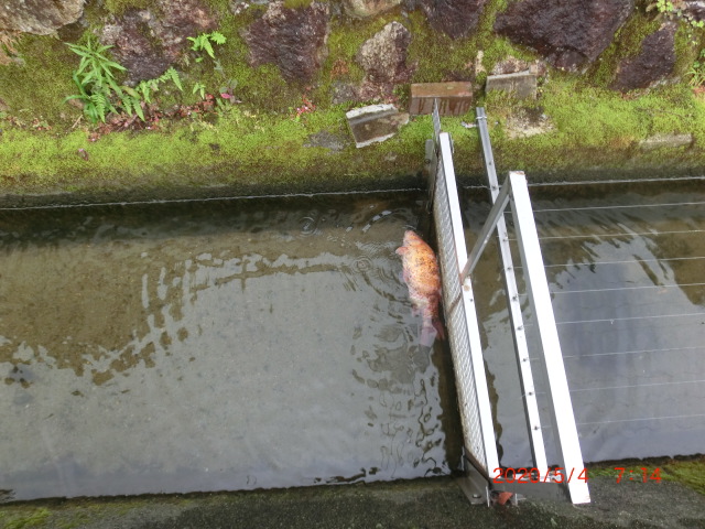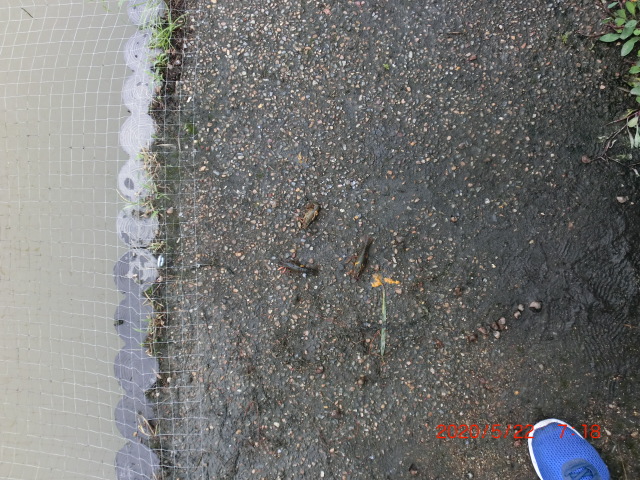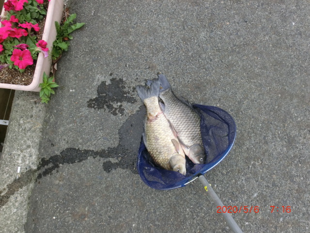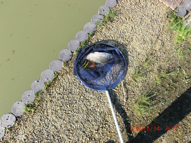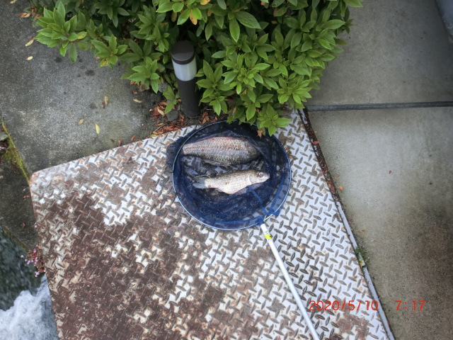 本日は魚は無事2020/5/6 次々魚が死にます。大きい2匹 上流 みんな鮒 写真
