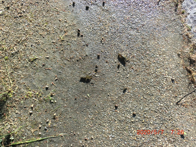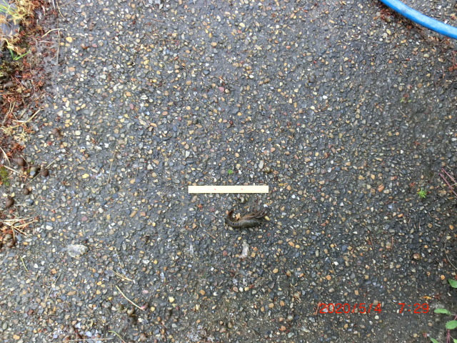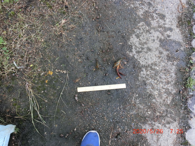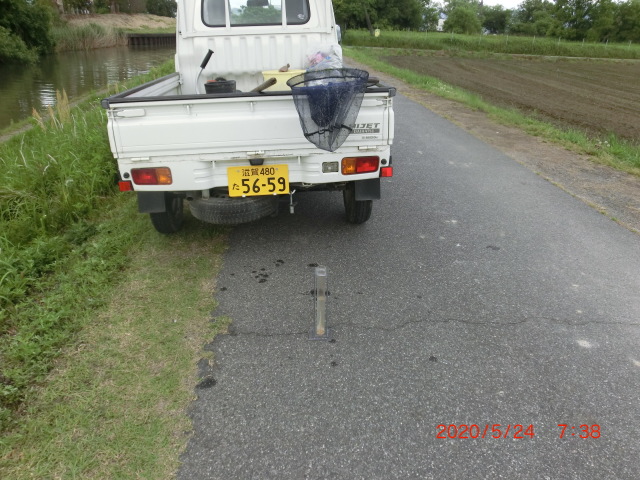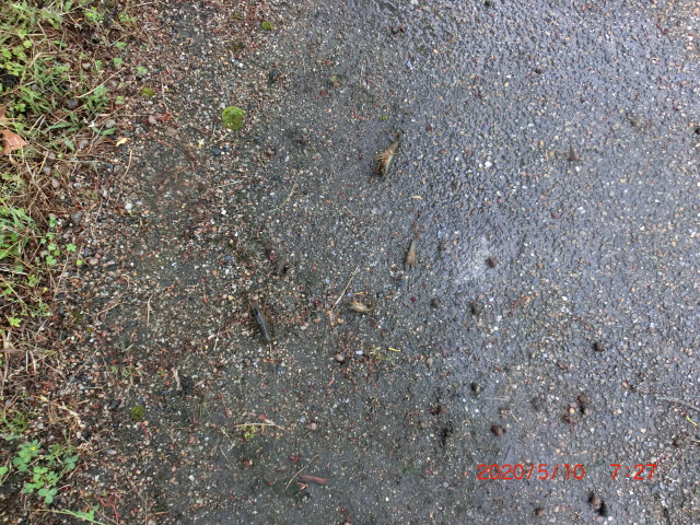 フナ、鯉 1匹づつ 死にました。 写真2020/5/24 生態系調査 町中小川 なし 、 山寺川内はザリガニ 写真