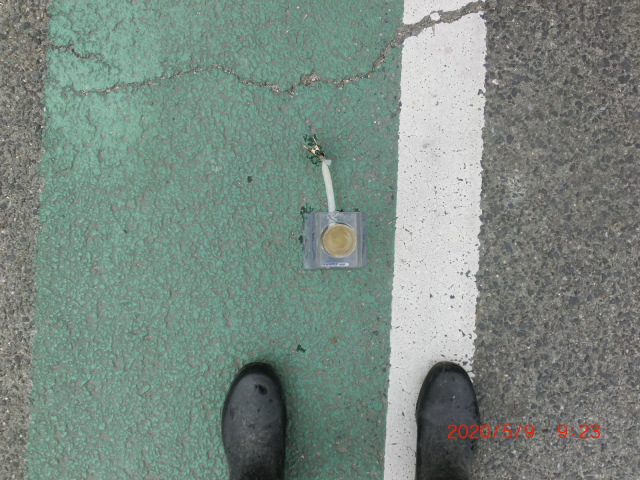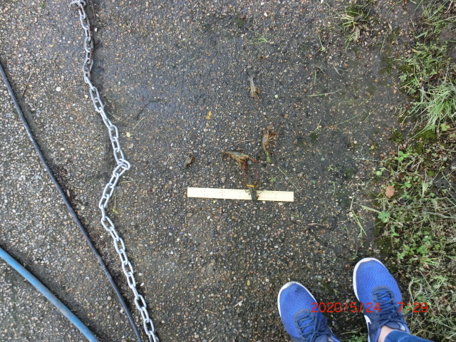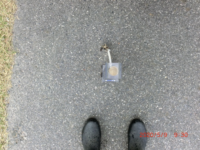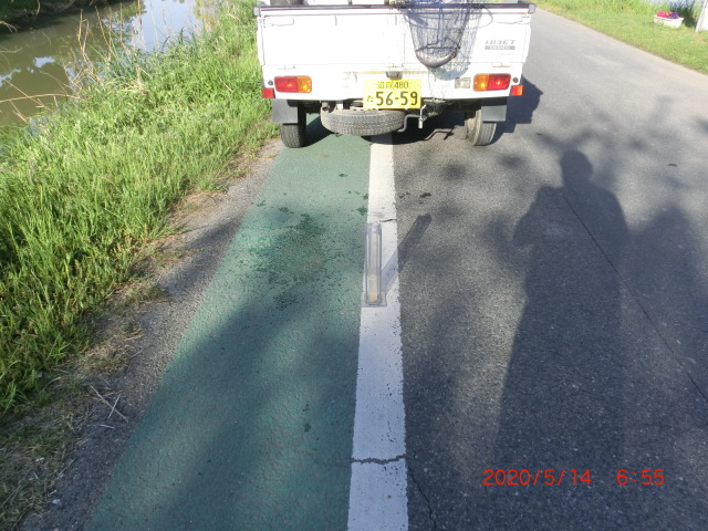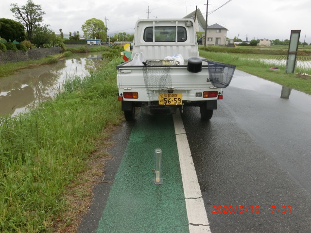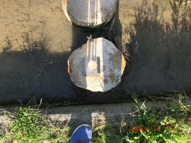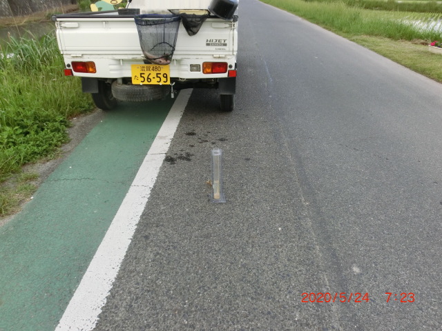 フナ1匹 死にました。ここ最近はなかったのに 守る会 メロン街道草刈り後仕舞、洗い場、山寺川沿い草刈り 写真2020/5/24 守る会 透視度調査(田植え後、一部代かき) C地点11.5cm 全体 アップ
