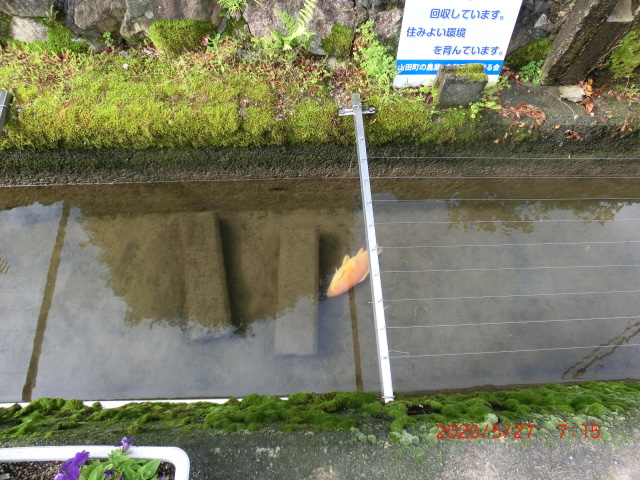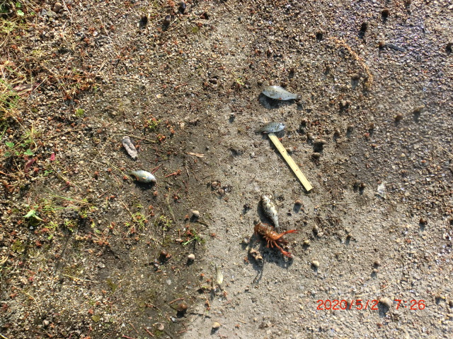 2020/5/27 生態系調査 町中小川 なし 山寺川 ザリガニ2匹 町中 緋鯉2匹死亡写真 写真