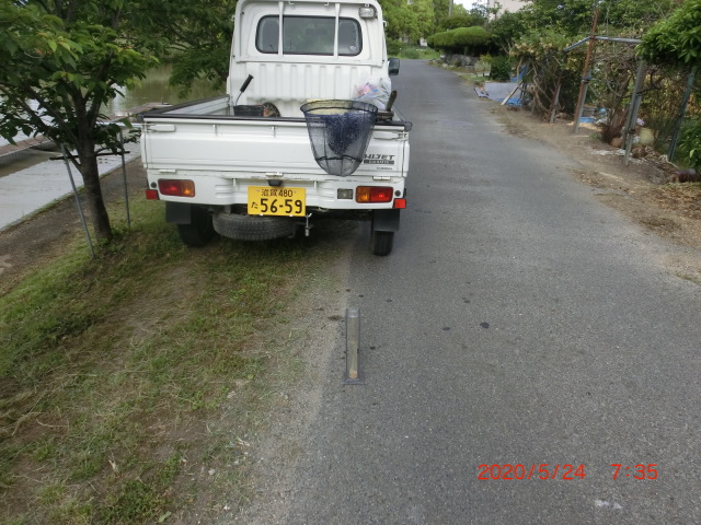 守る会 山寺川沿い農道、草刈り 写真 写真2020/5/21 生態系調査 町中小川 捕獲なし 山寺川内 ザリガニ 2匹