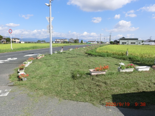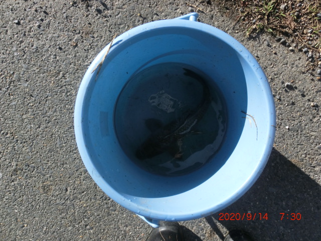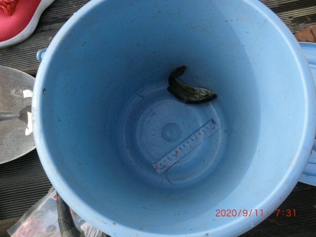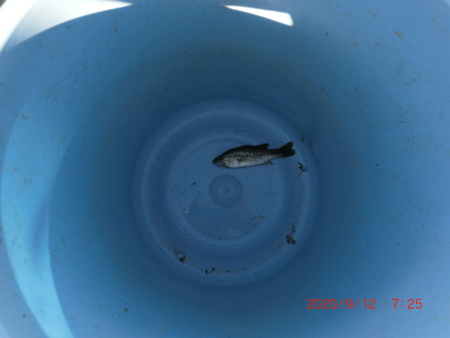 7組前 カバープランツ草刈り プランター整備2020/9/14 生態系調査 ポンプ前 鯉 1匹 ふな 0匹 ザリガニ 3匹 ブラックバス 0匹 カメ 0匹 ナマズ 0匹 写真