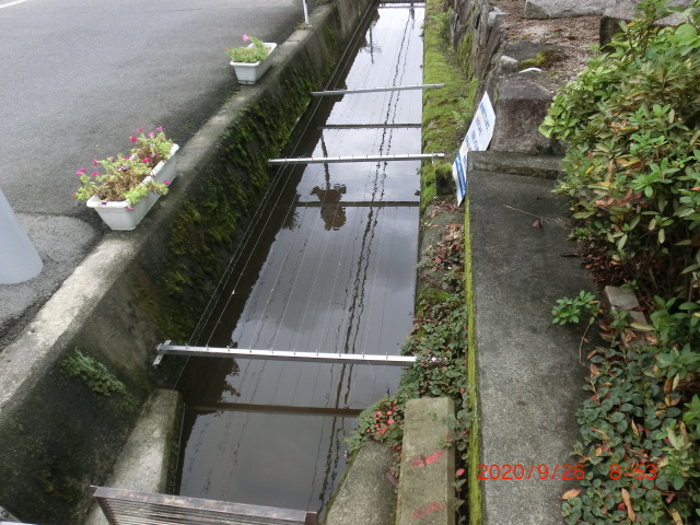 2020/9/26 雨が降って山寺川施設 水位 -20cm 結構降ったけど ペチュニア、ポーチュラカ 切り戻し