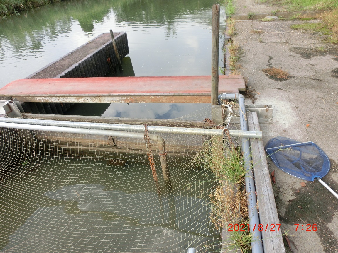 2021/8/9 生態系調査ポンプ前 バス2匹 写真