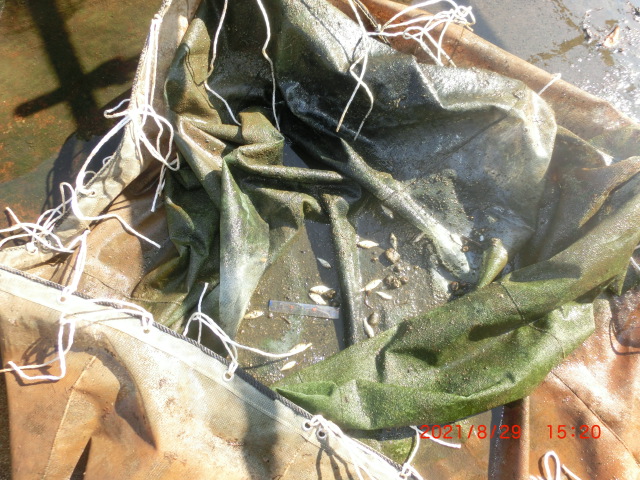 2021/8/29 生態系調査施設確認&清掃 にごろブナ約15匹 体長6cm(7/11 体長2cm) 外来魚 写真 写真