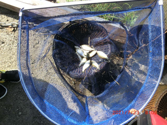 2021/7/23 生態系調査 ポンプ場 小鮒,タナゴ捕獲 写真