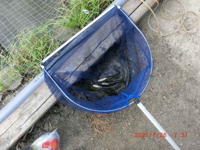 2021/7/28 生態系調査 ポンプ場 鯉,ナマズ捕獲 写真