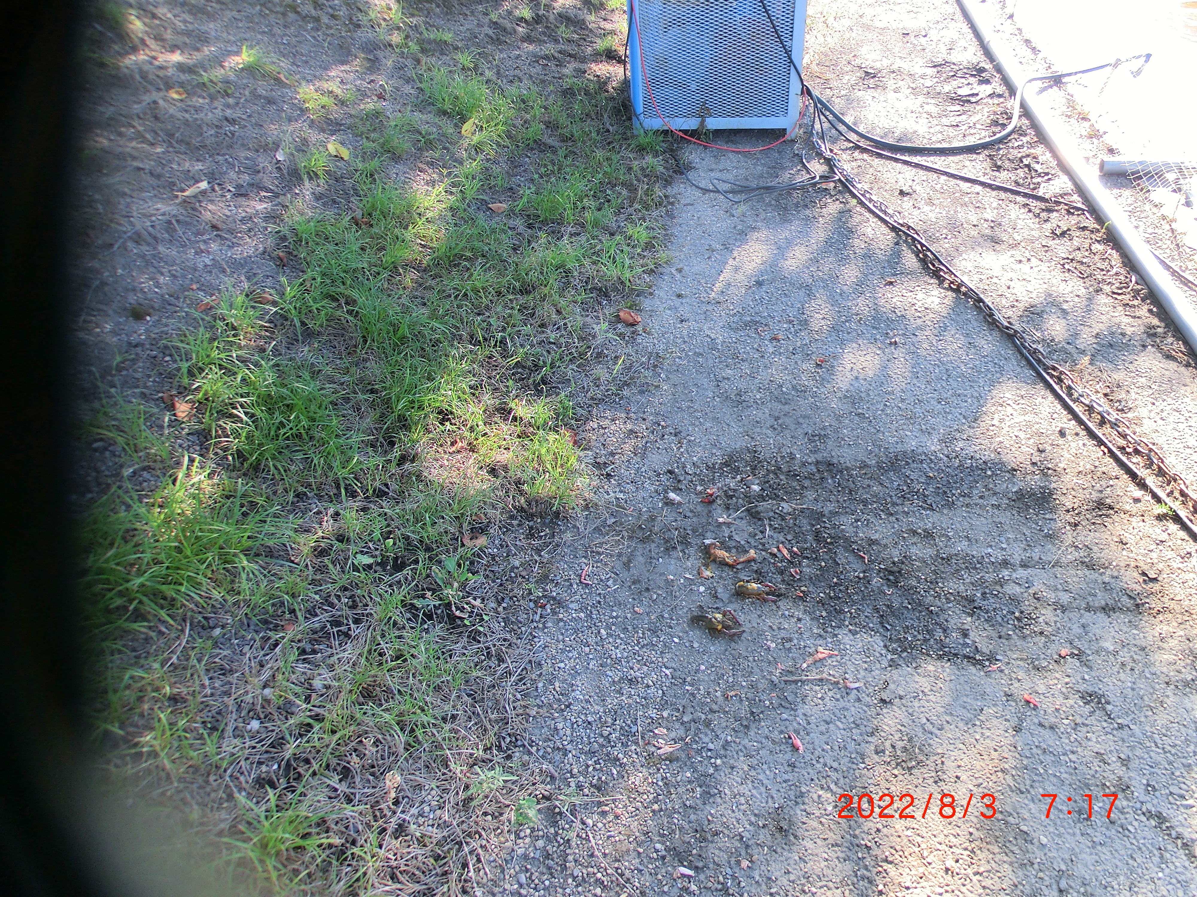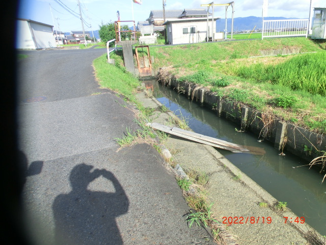 2022/8/23 有志の方 山寺川沿い草刈り 写真 生態系調査 ポンプ小屋前