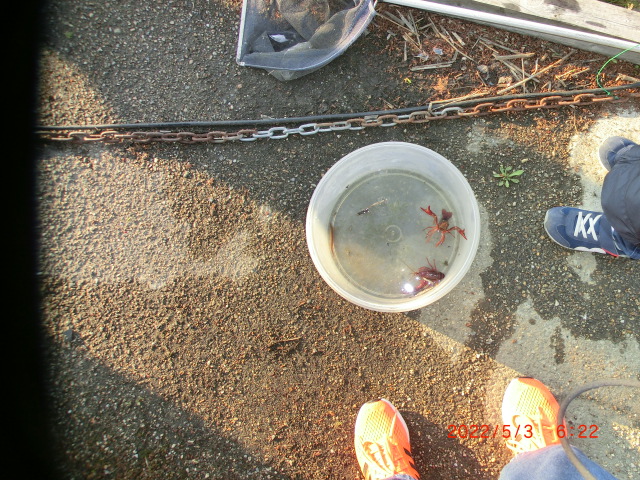 2022/5/3 生態系調査 山寺川施設 ザリガニ、ドジョウ 写真