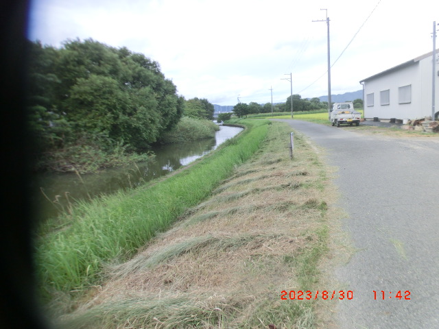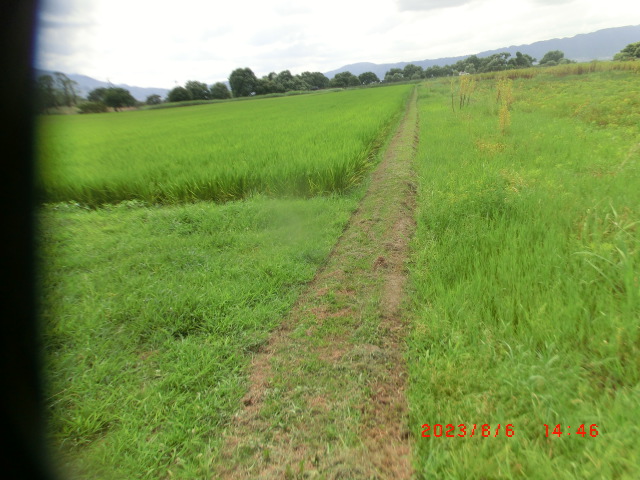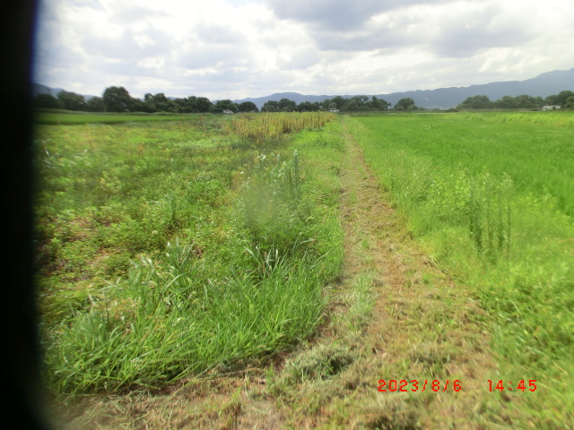 2023/8/20 楽しい散歩道 草刈り 遊休農地防止草刈り、排水側畔は未 写真 写真