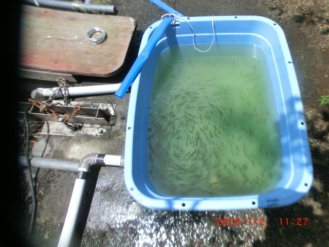 2023/7/29 ポンプで水を供給 酸素不足、水温上昇改善?