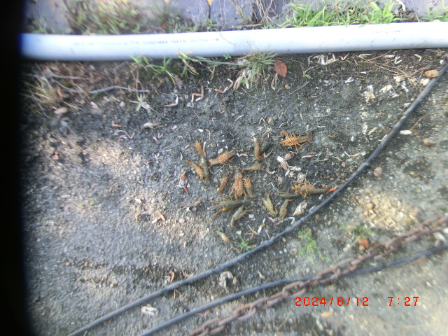 2024/6/20 ザリガニ 3匹 生態系調査施設、ポンプ小屋、洗い場小川除草剤散布